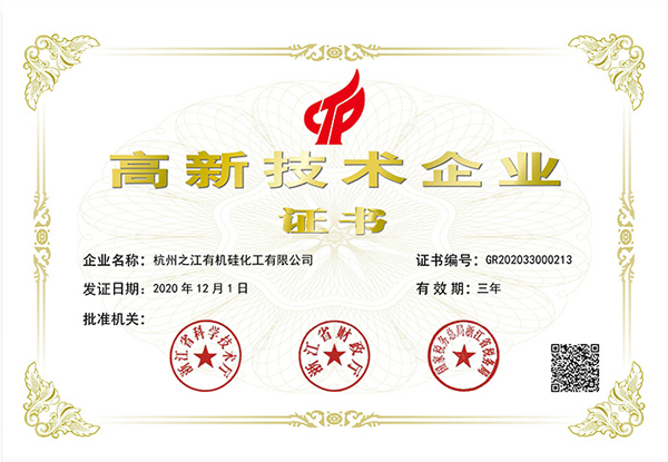 - 112020-2023 高新技術(shù)企業(yè)證書(之江有機(jī)硅)122019-2022 高新技術(shù)企業(yè)證書(新材料公司)