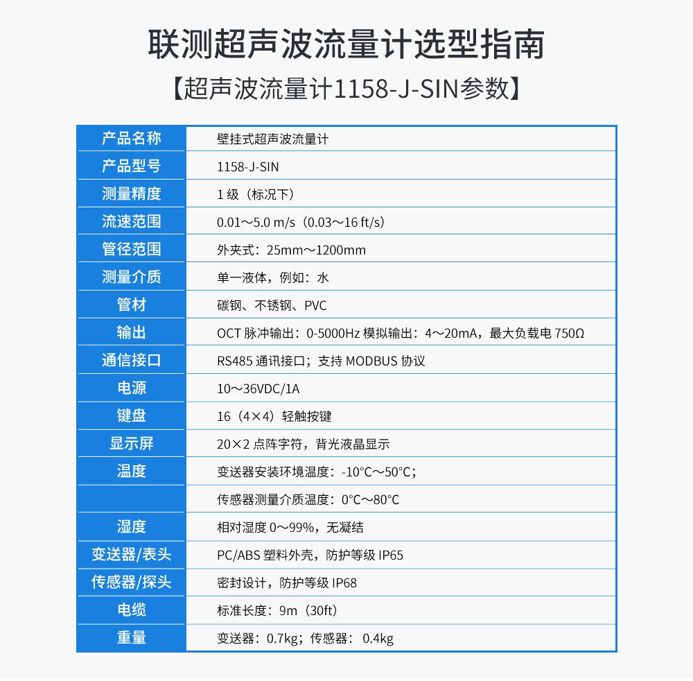 產(chǎn)品名稱:聯(lián)測1158-J-SIN通用型 壁掛式超聲波流量計