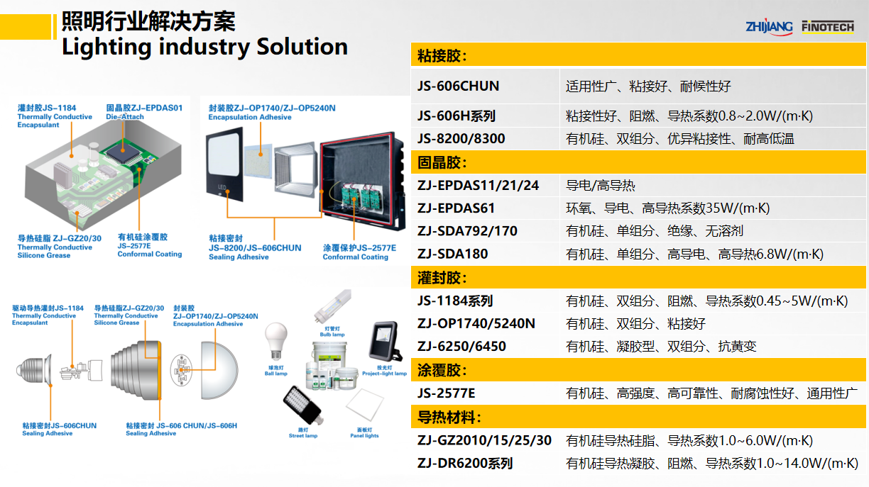 之江公司立足于中國膠粘劑行業(yè)領軍企業(yè)和有機硅、聚氨酯、環(huán)氧等專業(yè)膠粘劑的產(chǎn)業(yè)化優(yōu)勢,具有國家高新技術企業(yè)和國家級企業(yè)技術中心資質(zhì),依靠國家級CNAS實驗室以及國家級博士后科研工作站,并有國際專家助力,通過系統(tǒng)創(chuàng)新為照明行業(yè)提供高性能膠粘劑解決方案。