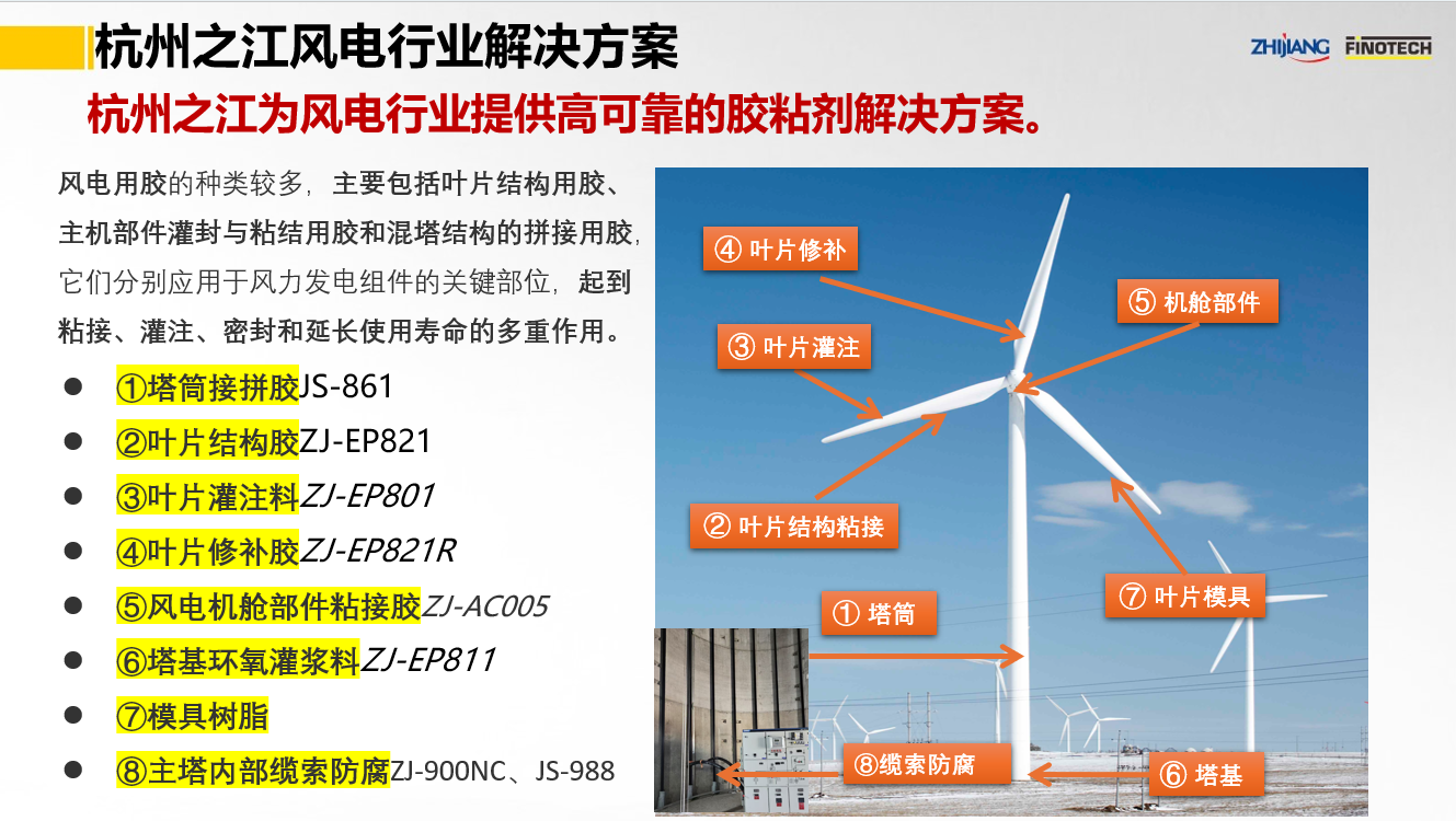杭州之江作為國內(nèi)領(lǐng)先的膠黏劑密封膠生產(chǎn)企業(yè),為全球提供風(fēng)電行業(yè)解決方案及一體化服務(wù),不斷通過產(chǎn)品系統(tǒng)創(chuàng)新,高質(zhì)量推動雙碳目標(biāo)的實現(xiàn)。