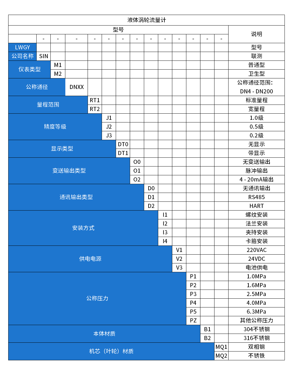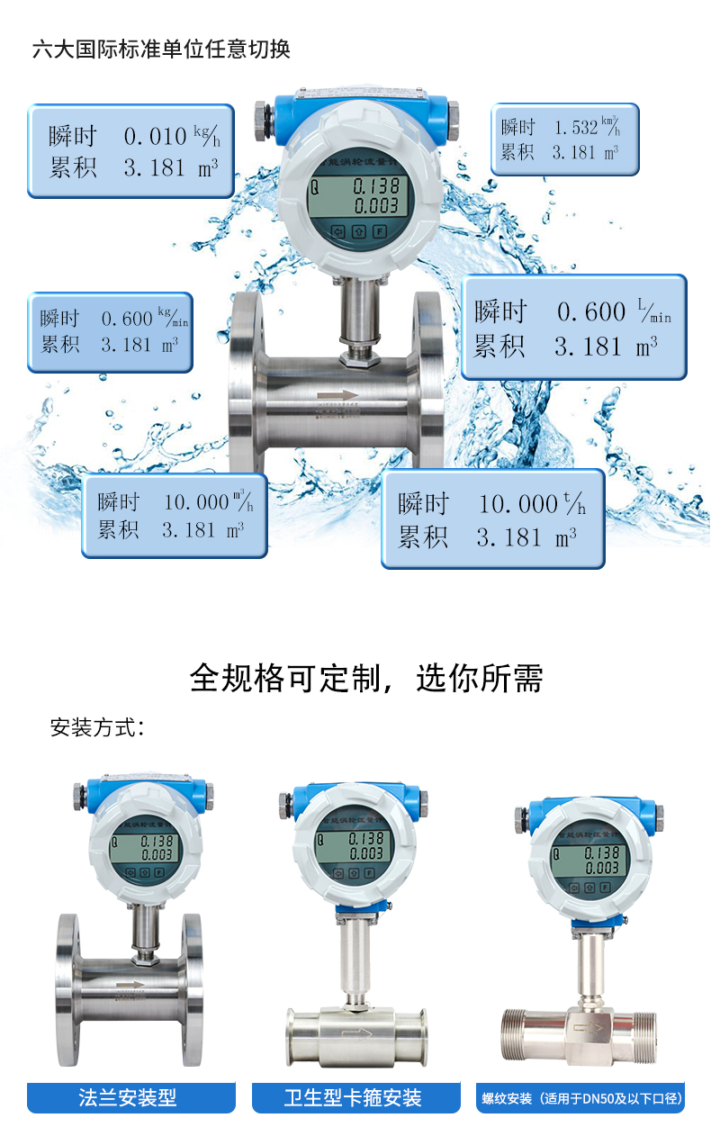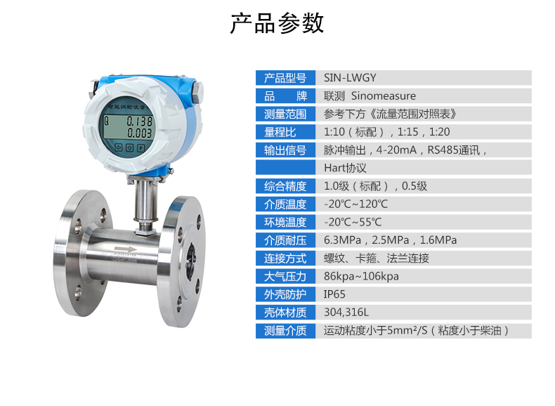 LWGY-SIN系列液體渦輪流量計(jì)(又稱(chēng)渦輪傳感器以下簡(jiǎn)稱(chēng)傳感器)基于力矩平衡原理。傳感器適用于在工作溫度下粘度小于5×10-6m2/s的介質(zhì),對(duì)于粘度大于5×10-6m2/s的液體,要對(duì)傳感器進(jìn)行實(shí)液標(biāo)定后使用。