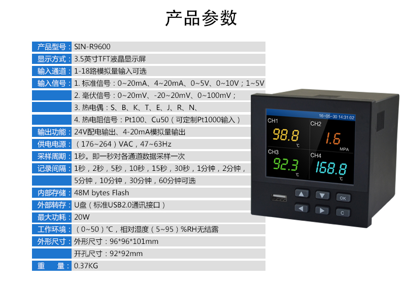 產品名稱:聯測_SIN-R9600_彩屏無紙記錄儀