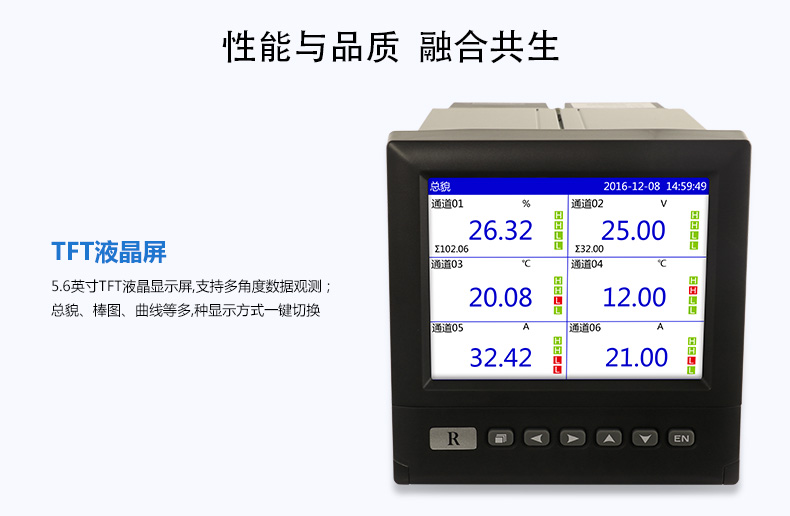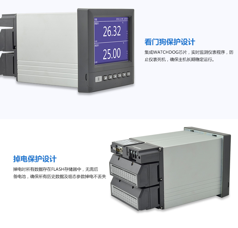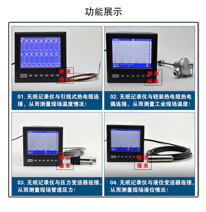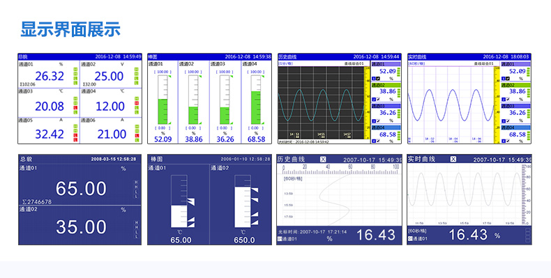 無紙記錄儀是將采集的數(shù)據(jù)/運(yùn)算數(shù)據(jù)以時間為基軸記錄在儀器內(nèi)部的存儲系統(tǒng)中,無消耗任何常用的記錄設(shè)施,如:紙張、筆墨。記錄在儀器內(nèi)部的存儲數(shù)據(jù),通過運(yùn)算、模擬后顯示在液晶屏。常用顯示用液晶屏比較廣泛。在液晶屏屏幕上,可以顯示數(shù)字顯示、棒圖顯示、曲線顯示、報(bào)警列表等。無紙記錄儀采集的數(shù)據(jù),常用的有:溫度、壓力、流量、液位、電壓、電流、濕度、頻率、振動、轉(zhuǎn)速等。